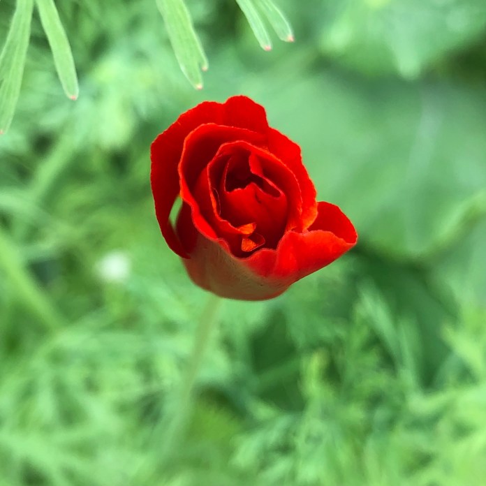 This is the first year I have red California Poppies growing. Only have had the orange color before.