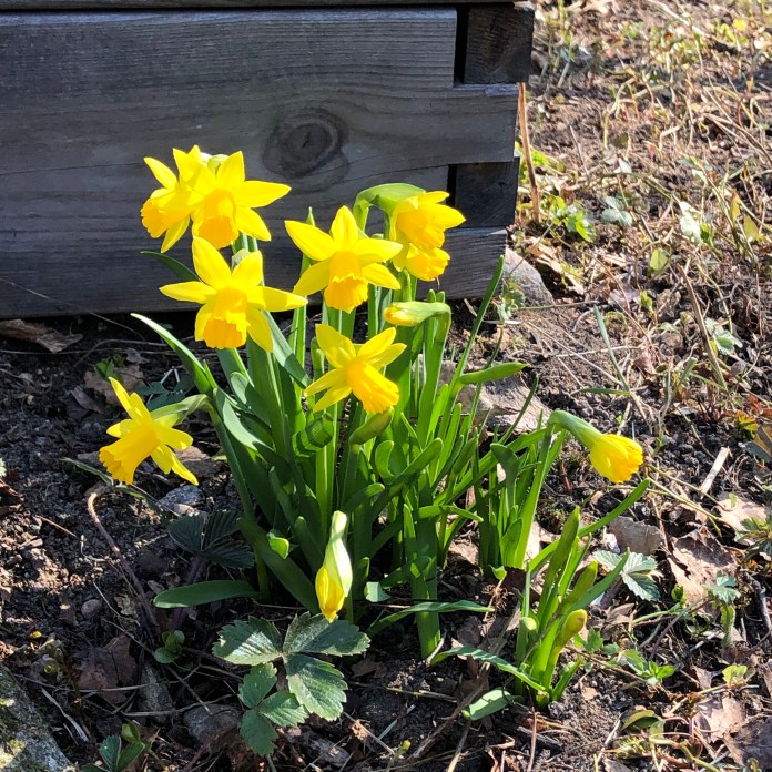 Luckily daffodils are very hardy and cold weather just makes them bloom longer. I on the other hand am running around the garden trying to get as many things as possible done before the bad weather.