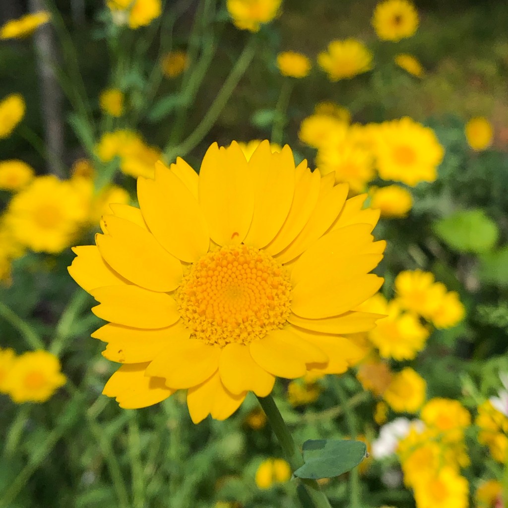 I did not plant any Corn Marigolds (Glepionis segetum) this spring put to my surprise I have plenty of them.